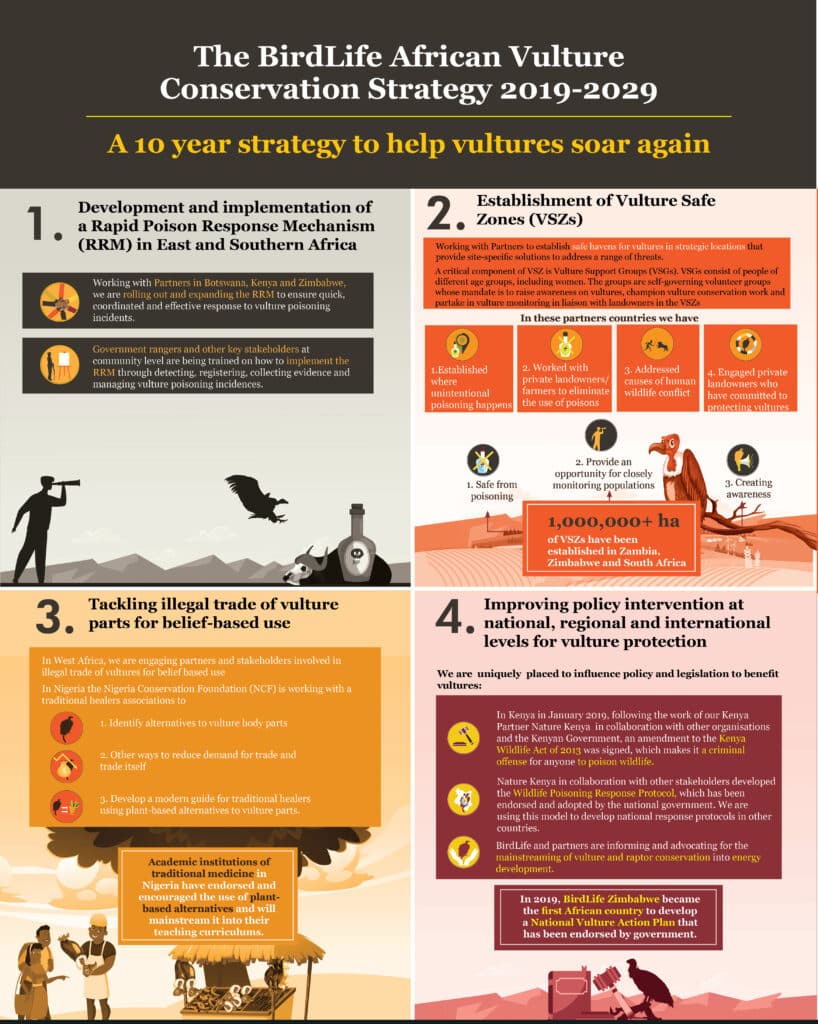 Vultures are synonymous with the African landscape and are dubbed ‘nature’s clean-up crew’, as they perform an essential ecosystem function, cleaning up carcasses and organic waste from the environment and likely helping limit disease transmission from death animals to humans and other animals.