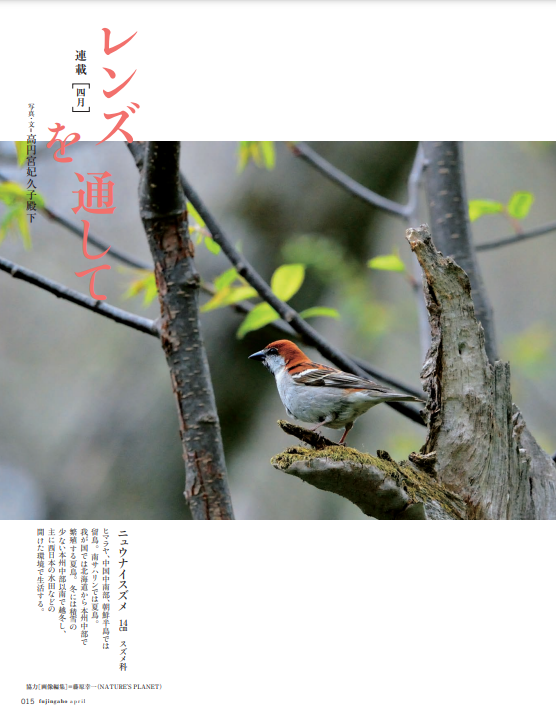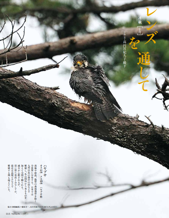 Fujin Gaho is Japan’s oldest lifestyle magazine for women, and Her Royal Highness has been writing articles with her own photographs since April 2011. Her articles are published monthly under the title “Through the Lens” with articles about birds published bimonthly, with her own wild bird photography.