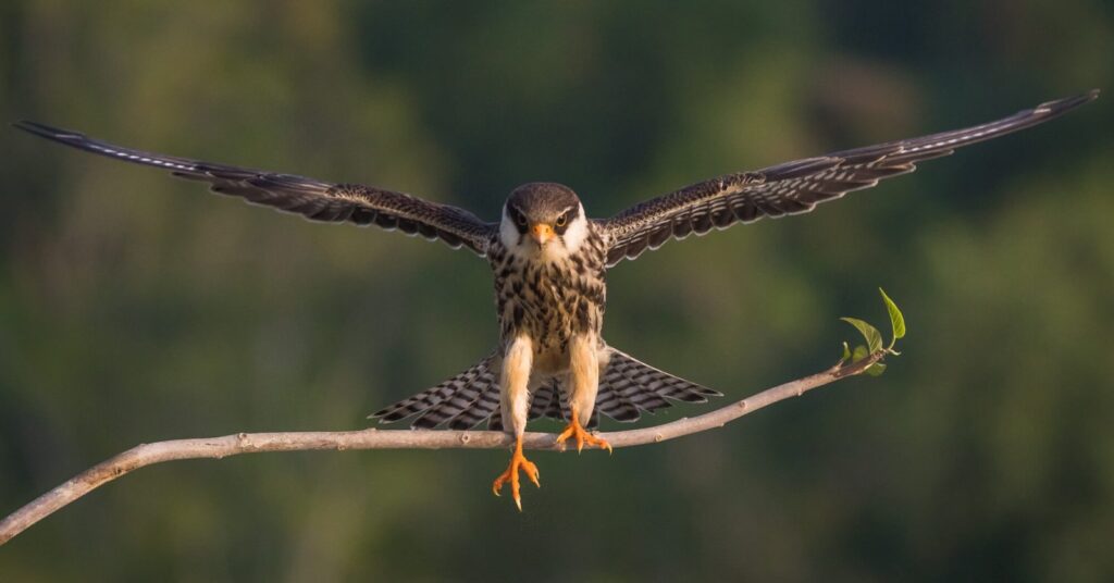 The second group contains slightly larger (on average) and more elegant species, the hobbies and relatives. These birds are characterized by considerable amounts of dark slaty grey in their plumage; the malar area is nearly always black. They feed mainly on smaller birds.