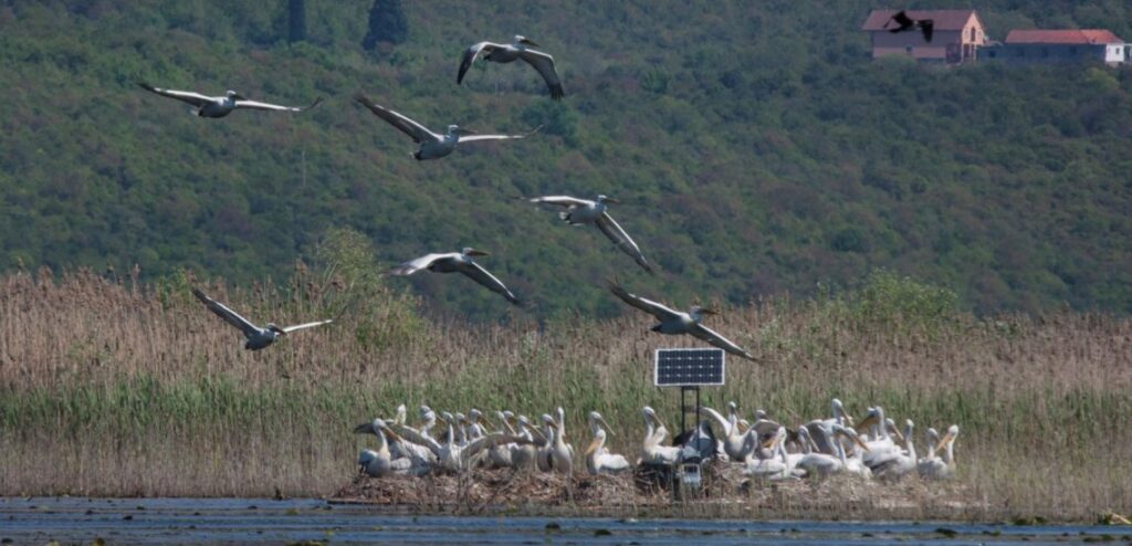 Header image: Dalmatian Pelicans on one of the project’s nesting rafts. Photo: © Natural History Museum of Montenegro
