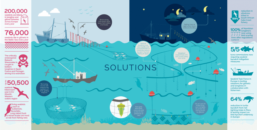 “…an estimated 200,000 seabirds [are] accidentally caught and killed by commercial fishing hooks and nets each year.”