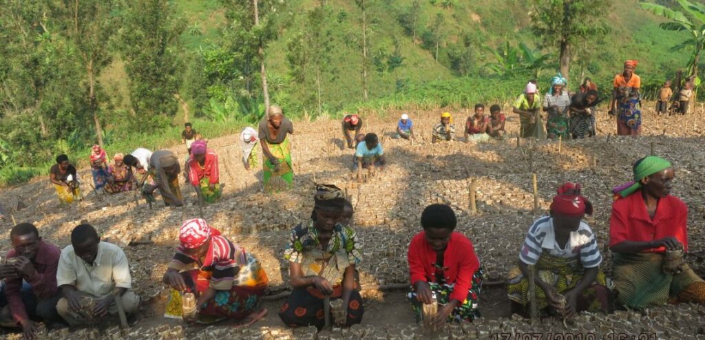 Tharcisse Vyamungu goes about briskly planting tree seedlings in the sun soaked fields of Lake Tanganyika Basin in Burundi. Vyamungu and other local farmers are tending to a number of tree nurseries dotting the farmlands. They are enhancing climate change resilience.