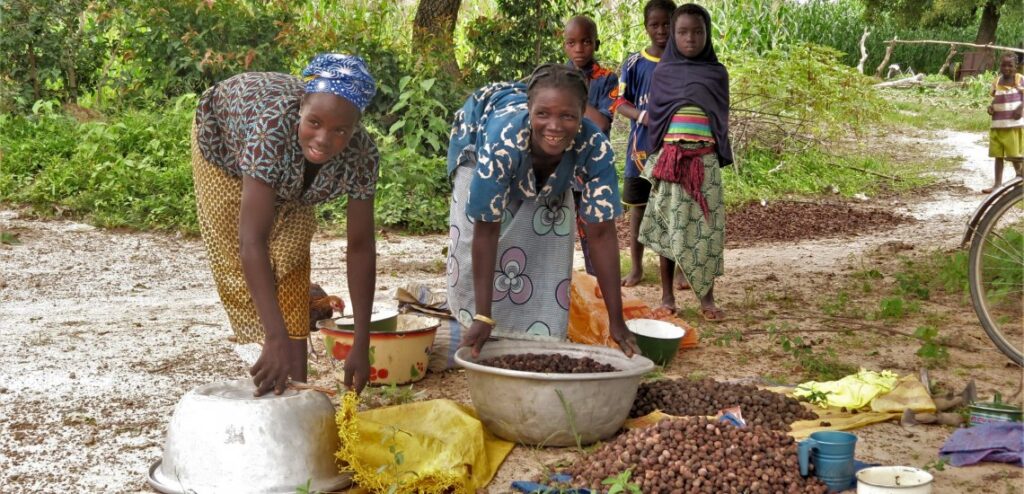 Assana Nabaloum one of the women involved in this exercise stands a distance away near a white sack being filled with the fruit. “This is the famous shea, an important fruit that is slowly improving our community’s livelihood”, says Assana. In many parts across the Sahel including Burkina Faso, the shea tree grows wildly, producing shea nuts which are high in nutritional value. Shea nuts are also used to produce vegetable fat, shea butter as well as skin and hair care products