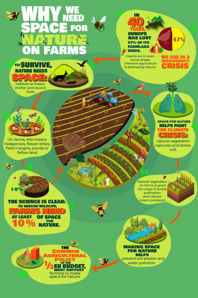 To save wildlife, we desperately need space for nature on farms. And to achieve that, the EU’s Common Agricultural Policy needs to support farmers’ transition to nature-friendly farming. Check out our infographic below to understand why (you can also view a larger version here).