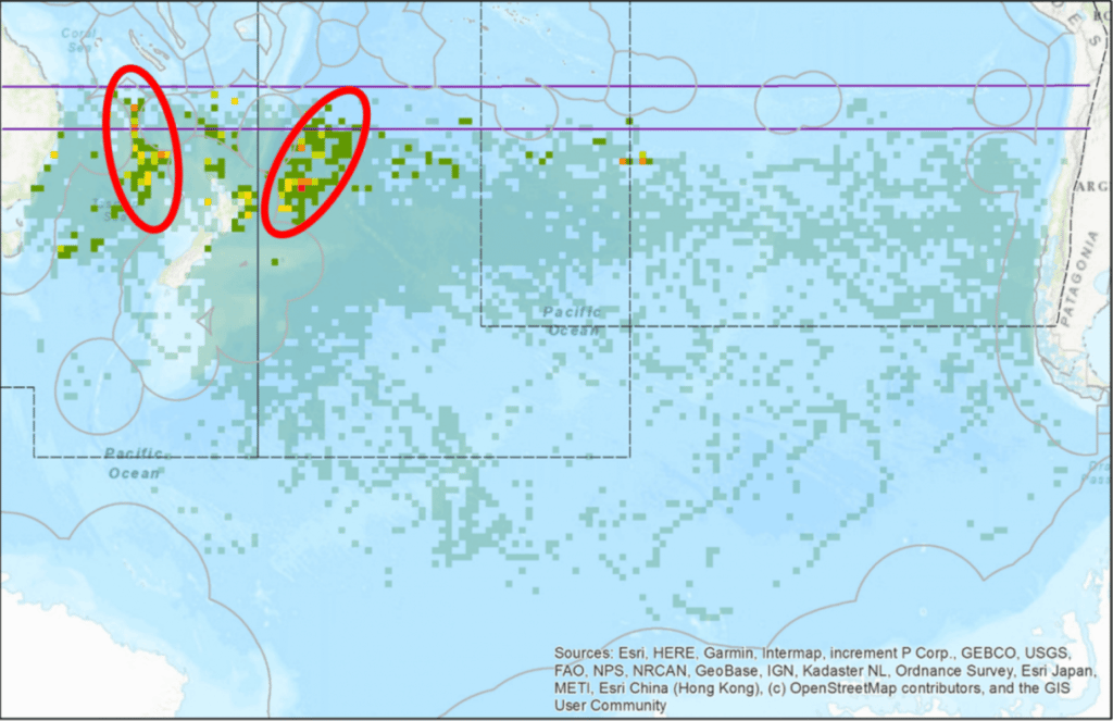 When researchers overlaid this tracking data with the distributions of longline fishing boats, they found that the areas of greatest overlap took place in the High Seas of the Western Pacific Ocean, particularly in the mid-Tasman Sea and to the northeast of New Zealand. When this tracking information was split by flag state, it revealed several key fishing fleets operating in areas frequented by the species, including Taiwan, Vanuatu (although vessels are likely operated by companies in Taiwan or China), New Zealand, China, and Spain.