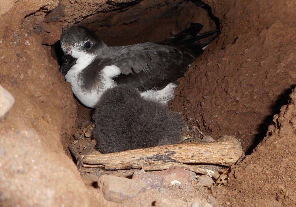 Cape Verde petrel’s (Pterodroma feae) chicks spend their first days of life sheltered in rock crevices on the Cape Verde Islands. For five months, they will wait patiently for nightfall for their parents to return to the nest and serve them a succulent dinner mainly based on small cephalopods and fish. With an estimated population of 1,000-2,000 individuals, the species is considered Near Threatened according to the IUCN Red List of Threatened Species