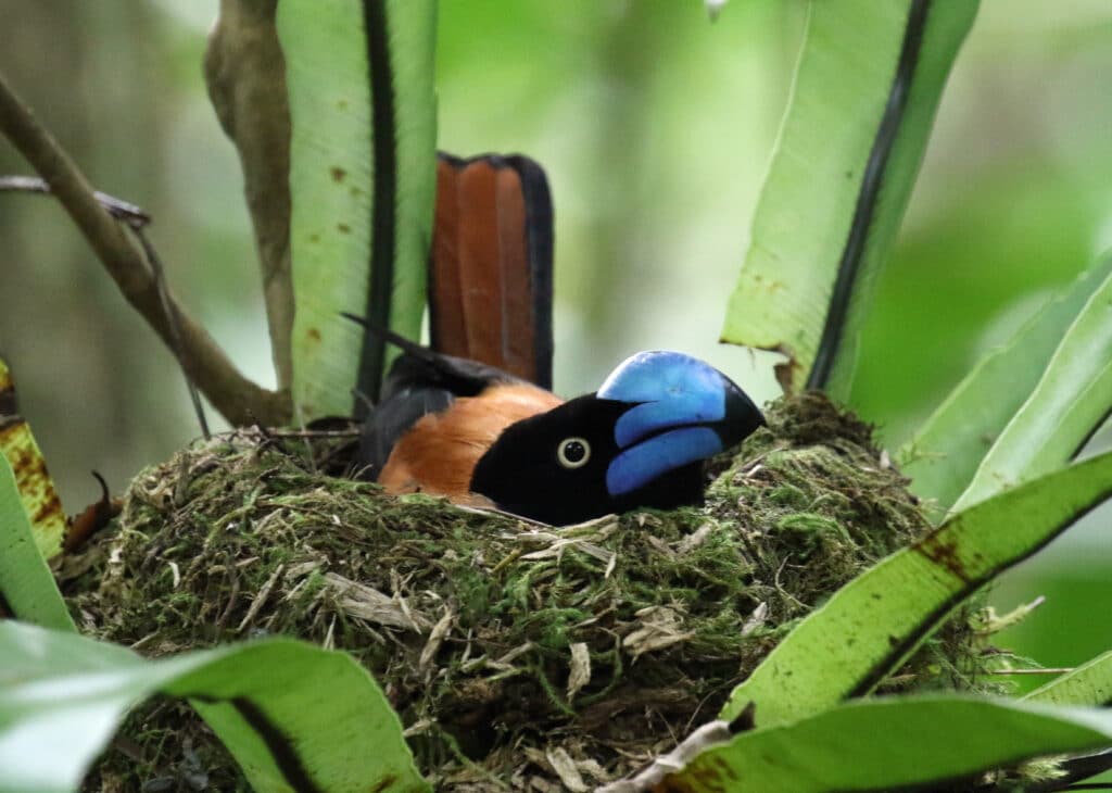 Also present on the island are the Asities – one of four surviving families of birds exclusive to Madagascar. Characterised by the brightly-coloured wattles around their eyes, they have become emblematic of the country’s wildlife. In fact, the Velvet Asity Philepitta castanea is the flagship species of ASITY Madagascar (BirdLife Partner), an organisation founded by Malagasy conservationists in 1996 to protect their unique treasure trove of nature.
