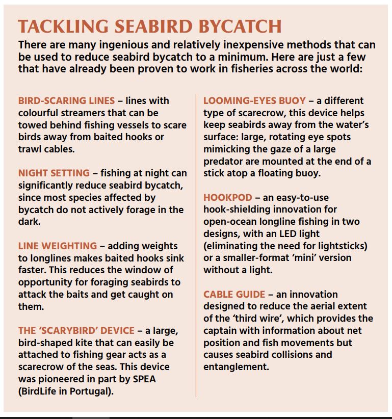 What’s more, very few fishing boats have observers monitoring bycatch on board, and the enforcement of bycatch monitoring is very poor. In addition, the monitoring only counts seabirds that die. Many are injured and even maimed. Some are caught by fishing gear but escape before reaching the surface, so may go unnoticed. Some are captured alive.