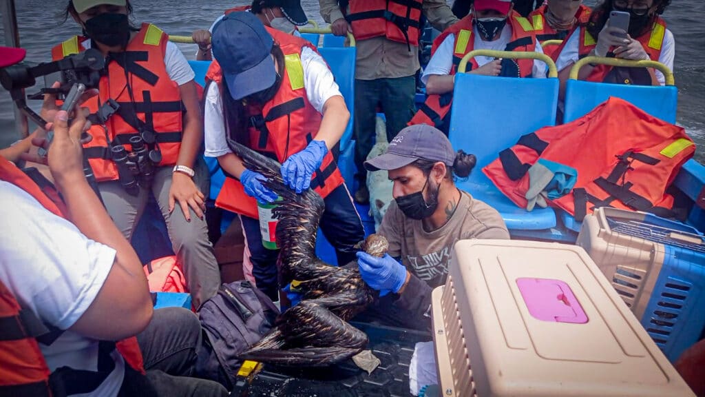 2) Work together with the Peruvian authorities and conservation entities to confront this ecological disaster and monitor the oiled fauna to have precise information on the final impact of this accident.