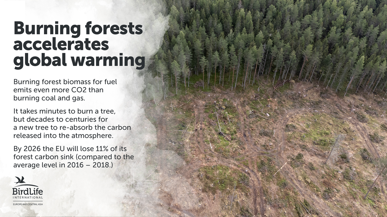 Bioenergy is the energy produced by burning biomass. In Europe, 60% of bioenergy is produced from burning wood5. Burning forests. And this has dire impacts: biodiversity loss, global warming, and increasing pressure on our beloved forests.