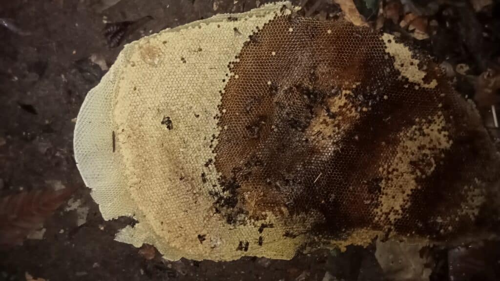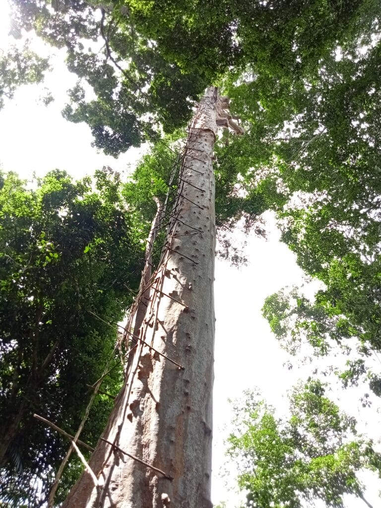 When not working as Hornbill Guardians, a few members of the team work with other members of their community by scaling the Helmeted Hornbill’s favourite tree, the Tualang tree Kompassia excelsa. This tree also happens to be popular with Asian Giant Honeybees Apis dorsata that produce a rather special Tualang honey. Between March and July every year, groups from Kampung Chuweh climb up to 50 meters high in these massive trees to collect this honey. Despite the incredible risk, the payoff for the community is very valuable, and many refer to the supplemental income from the honey as a ‘bonus month’.