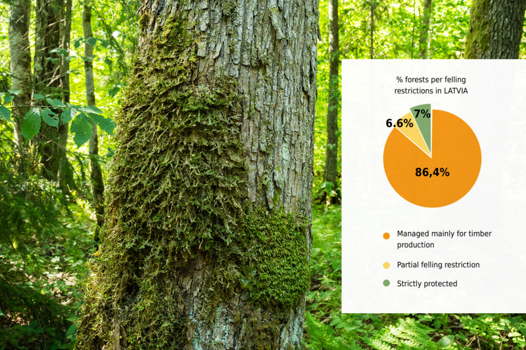 Only 7% of forests are strictly protected in Latvia and partial felling restrictions apply to only 6.6%. Viesturs comments: “With only 11.5%, Latvia has the second lowest coverage of Natura 2000 sites in the EU after Denmark. But even within Natura 2000 sites you will be able to find a lot of clearcuts, as is the case for the Nīcgales meži or Forests of Nīcgale. While one of the conservation goals of this area is the protection of forests, it has been heavily logged during the past 20 years. And this is just one example. However, it is worth designating Natura 2000 areas for forest protection because, though not perfect, they still ensure better protection than outside these territories. “Nīcgales meži” is a bad example but there are also good ones.”