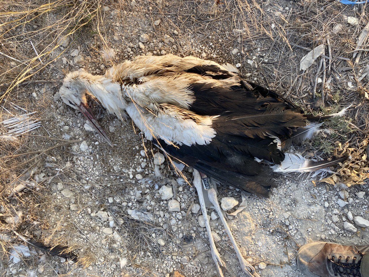 Large species, especially soaring birds like the Eastern Imperial Eagle (Aquila heliaca), Saker Falcon (Falco cherrug), White Stork (Ciconia ciconia), and Eurasian Buzzard (Buteo buteo) and many other species can be killed by electric shocks on specific unsecured types of masts. The bird might be electrocuted by completing an electrical circuit, simultaneously touching two energized parts, or an energized part and a grounded part. This could happen when the bird for example stretches its wings and touches two wires.