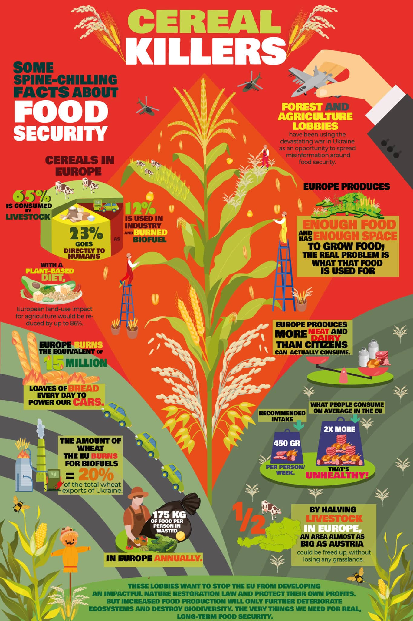The rumours that Europe is currently facing a food security problem are loud and widespread. The forest and agriculture lobbies have been using the devastating war in Ukraine as an opportunity to spread misinformation around food security. Their ultimate goal is to stop Europe from taking steps to protect and restore its nature, and to instead protect and maintain their own profits. It doesn’t take a genius to see why this is bad.