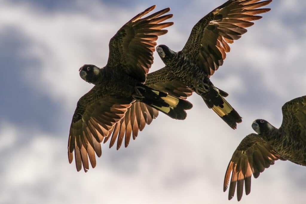 Along with warming temperatures, the increasing frequency and severity of wildfires is also taking its toll on Australian birds. The devastating ‘black summer’ bushfires of 2019-2020, which made international news headlines as they swept across 19 million hectares of the country with exceptional intensity, had a particular impact. Thought to have impacted up to 180 million individual birds, these fires alone have contributed to 10 species being moved to higher extinction risk categories. Roughly 30% of the global population of Pilotbird is thought to have been lost, as well as 21% of that of Gang-gang Cockatoo, which was already in decline due to logging of its native habitat – both are now considered Vulnerable. Baudin’s Black-cockatoo, endemic to forests in the far west of the country, is also in trouble. A combination of bushfires and logging have left the old trees it relies on for nesting in short supply, contributing to a staggering 90% population decline over the last few decades – it is now Critically Endangered.