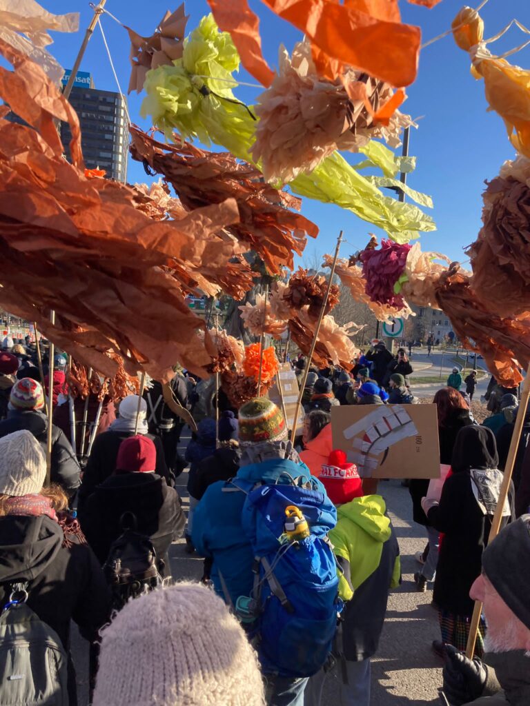 Header image: Protestors in colourful costumes at the March for Nature and Rights in Montreal, Saturday 10th December