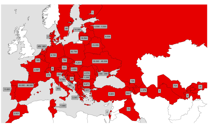 - Global population: The global population size is estimated at 700,000-704,000 individuals. [1] The European population is estimated at 502,000-563,000 mature individuals.[2]