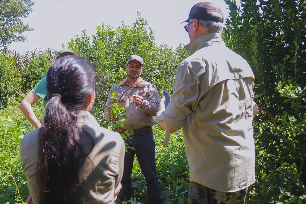 The team from Guyra Paraguay showcasing organic shade-grown yerba mate plots within the San Rafael buffer area with local farmers and representatives from the Hempel Foundation. | @Cindy Galeano