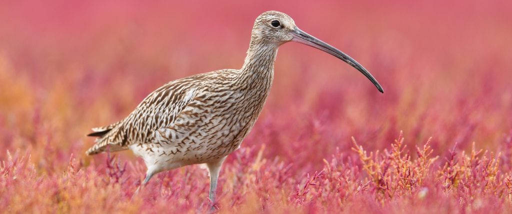 With its down-curved bill, long greyish-blue legs and an unmistakable call: you can’t miss the European Curlew. In the autumn and winter, you will most likely find Europe’s largest wading bird on estuaries. In the spring and summer instead, you’ll spot them on heathlands, during their migration to upland breeding grounds. The Curlew is a remarkable long-distance migrant, travelling along the East Atlantic Flyway. They winter along the Atlantic coast from North Africa to the North Sea, and in breeding season, they span regions from Spain and Ireland to the Ural Mountains and up to the Arctic Circle.