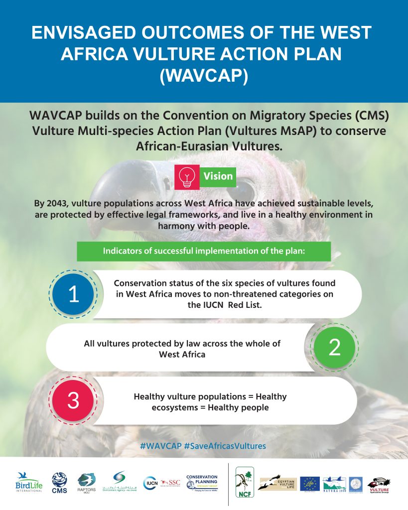 In West Africa, belief-based use is the leading cause of vulture deaths. In April 2024, a coalition of organisations including BirdLife, the Convention on the Conservation of Migratory Species of Wild Animals (CMS) launched the West Africa Vulture Conservation Action Plan to address key threats faced by vultures in West Africa . The Plan targets actions to be carried out in 16 countries in the region, with a vision of ensuring that vulture populations achieve sustainable levels and are protected by effective legal frameworks by 2043.