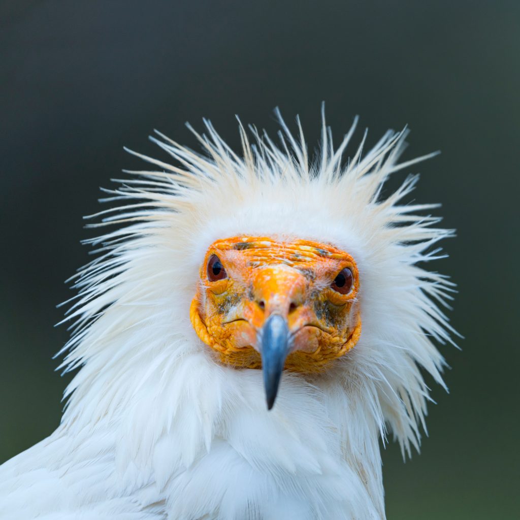 With its striking yellow face and white plumage, the Egyptian Vulture is an unmistakable sight in the sky. Celebrated in many cultures for its resourcefulness, the Egyptian Vulture is one of the few bird species to use tools such as pebbles to open large eggs. Contrary to the adult, juveniles are dark brown, gradually gaining the iconic white feathers as they mature.