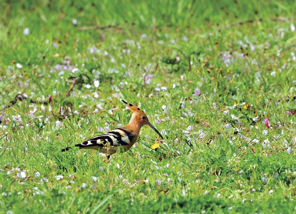 Next up is a “Yatsugashira” (English name: Common Hoopoe). This bird, which amuses us with its distinctive appearance and movements, has the same name as a variant of the taro. “Yatsugashira” taro is used in festive dishes to wish for the prosperity of offspring as its auspicious name and as the parent and offspring do not separate, but instead form a lumpy mass. It is a bit funny to see the coincidence of the same name being given to two creatures that both have unique appearances.