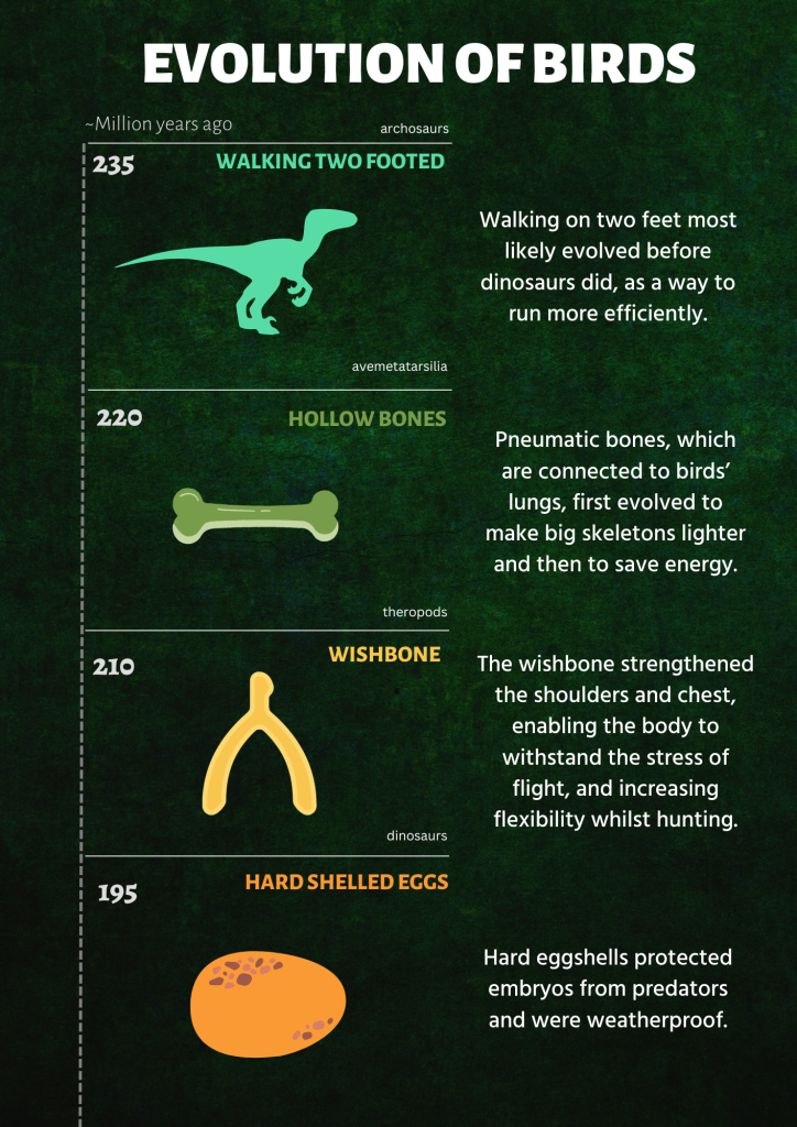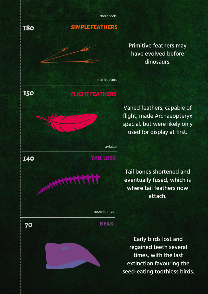 Our precious birds carry on the legacy of the Jurassic era. Their evolution was not straightforward; many traits evolved repeatedly, with some lost and regained. The timeline is strongly debated, but each adaptation brought us one step closer to the modern birds of today.