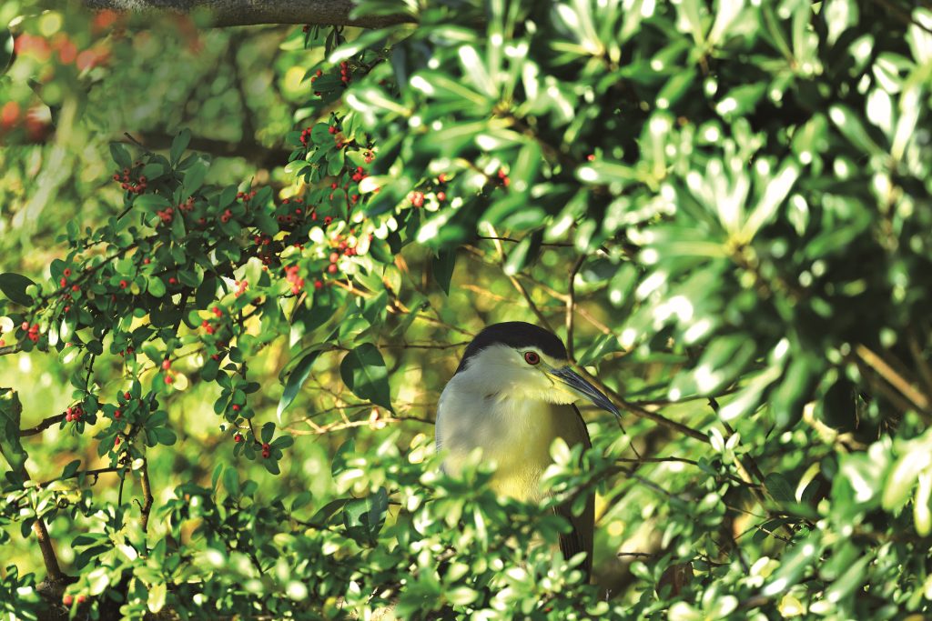 The photo above is a Black-crowned Night-Heron – I was really surprised when I found it! They are nocturnal, so they must have settled down to sleep in a convenient tree before the park opened. It was sleeping soundly with its beak tucked under its wing, unnoticed by anyone but the birders, next to a bridge where many people pass. The photo was taken when the bird was startled by the loud voices of kindergartners running past and opened its eyes.