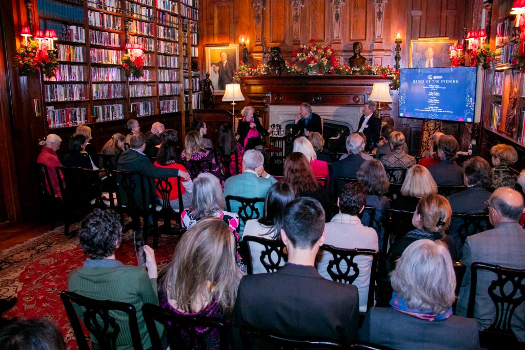 Taking place in the Lotos Club, the evening gathering included a fireside chat with Margaret herself, followed by a Q&A and a book signing fundraiser. Margaret read from her newly released book, Paper Boat – New & Selected Poems 1961-2023 and went on to sign copies for attendees.