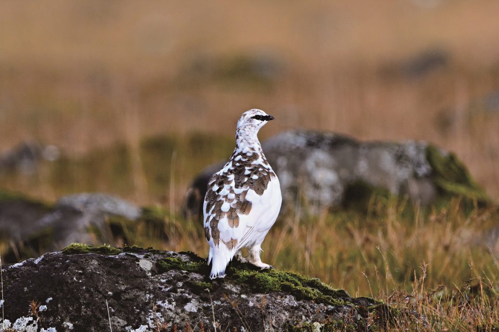 The ptarmigan in the last photo (below) was still in the middle of moulting, showing a mottled pattern of brown and white. As it was mid-October, this change in plumage occurred about a month and a half earlier than Japan’s Rock Ptarmigans. Individuals that inhabit Iceland and other Arctic regions moult twice a year: into breeding plumage and non-breeding plumage. In contrast, Japan’s Rock Ptarmigans, which live at the southernmost edge of the species’ range, have evolved an additional autumn moult. This is due to the long snow-free period, resulting in three moults per year.